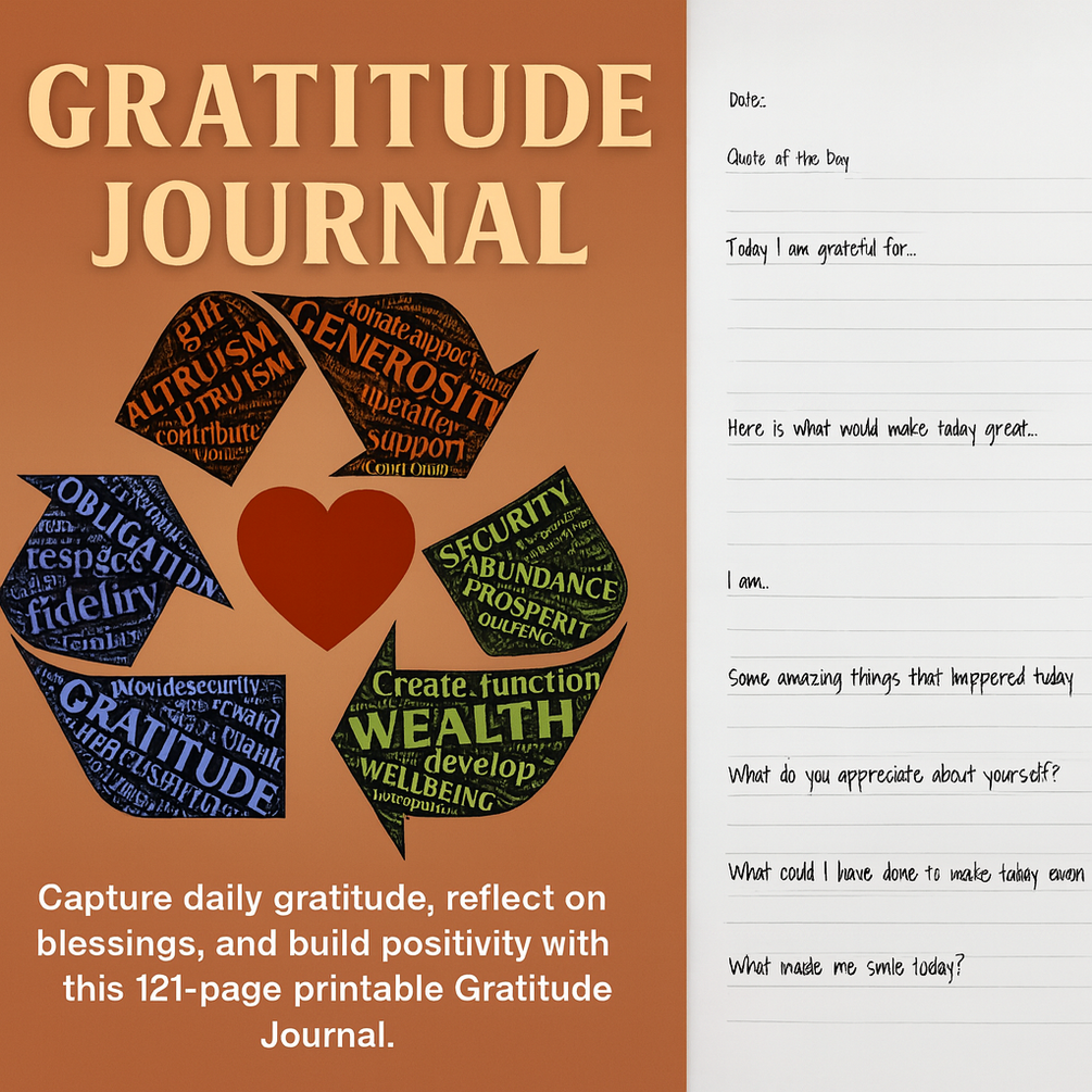 Cultivate joy, abundance, and peace every day with the Gratitude Journal — your personal space to reflect, appreciate, and grow in thankfulness.